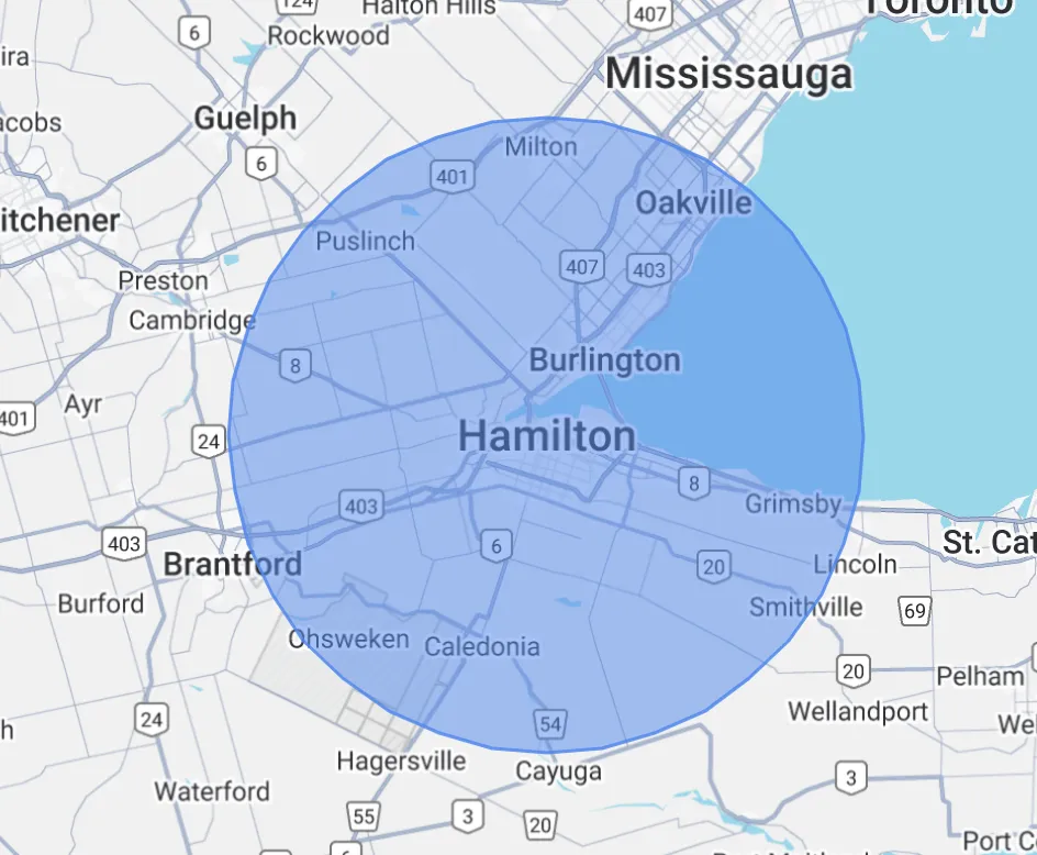 The brand-new home selling system described in this book is what works best to sell a home in 2025 and, if you're selling a property in or around the Hamilton and the surrounding area, including the blue areas on this map, this is especially for you!